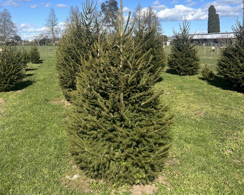 NORWAY SPRUCENorway Spruce is the traditional Christmas tree which has been popular since Victoria times with short and thin, varying bright and beautifully deep green pointed needles. It has a more triangular shape than other varieties with attractive red-brown bark, a rich coniferous fragrance, broad base and bushy habit. These Christmas trees are very popular in Europe and North America and would be regarded as one of the most well known varieties grown on farms in those aforementioned continents. While regarded as quick in growth, in New Zealand they would be considered medium in growth with a Christmas tree size of 6’ to 8’ (2m approx.) grown in 4 to 6 years.
